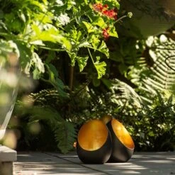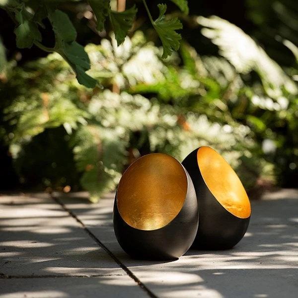 Made from 1mm sheet steel with a smooth blackened finish and burnished golden interior. Holds one standard tealight candle.