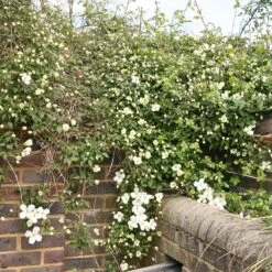 Exquisite, pure white, late spring and early summer flowers with yellow centres and dark green leaves. This extremely vigorous clematis is excellent for training over a pergola or covering an unsightly wall, fence or garden shed. It’s an ideal climber for a north-facing site.