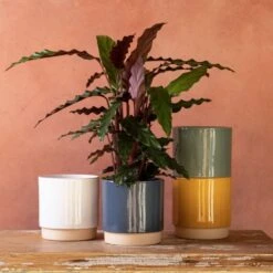 12cm pot, 30cm tall, with 13.5cm olive glazed pot, with 13.5cm blue glazed pot, with 13.5cm white glazed pot, with 13.5cm mustard glazed pot