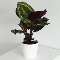One of the most beautiful and colourful foliage houseplants, this close relative of the calathea has relatively large leaves that unfurl to reveal distinctive patterns on the top, and a red-flushed reverse. They will add an exotic touch to bright misty bathrooms or kitchens.