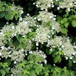A star plant, this climbing hydrangea thrives in some of the most shady, inhospitable areas of the garden. Slow to establish, it will eventually romp along a wall or fence, clinging by aerial roots. Its almost heart-shaped, dark green leaves turn yellow in autumn, and masses of showy, lacy, white flowerheads appear in late spring and early summer.