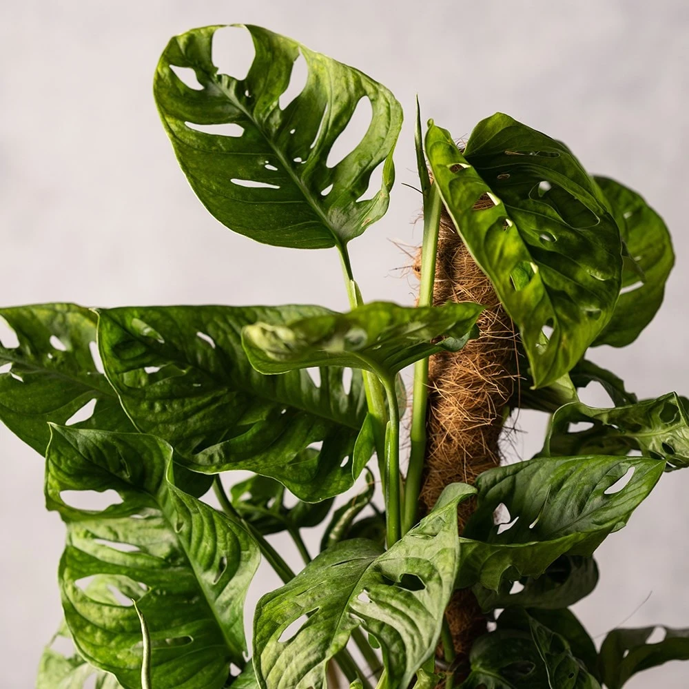 A new form of the ever-popular (and easy to grow) Swiss cheese plant. ‘Monkey Leaf’ has slightly ruffled rich green leaves, each laced with a series of irregularly shaped holes. As your plant grows you can gently push the aerial roots into the moss-covered pole – or carefully remove it from the pole and let the lax stems tumble over a shelf or windowsill.