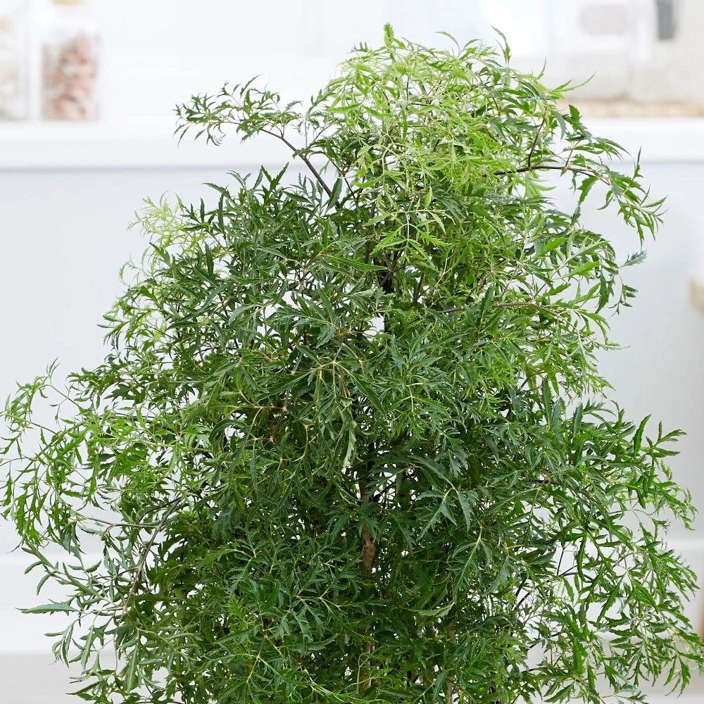 The slender, mainly upright stems of this striking and relatively unfussy house plant are clothed with fern-like foliage, creating a lush, tropical effect.