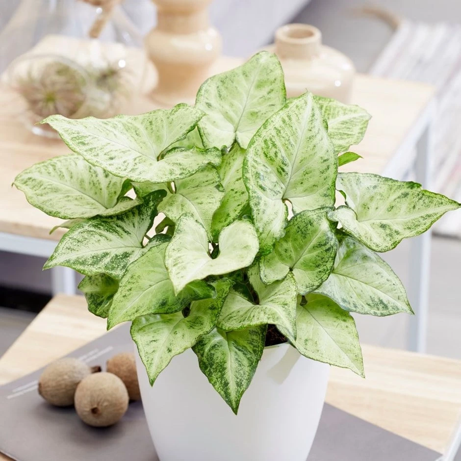 The foliage of this unusual but easy to grow house plant changes shape as the plant matures. Initially the leaves resemble arrows, but in time new leaves will have three to five segment-like fingers. The colouring is quite striking too, being a blend of green and cream. As the plant matures, it also starts to form lax stems, which if given support will eventually start to climb – so the choice is yours!